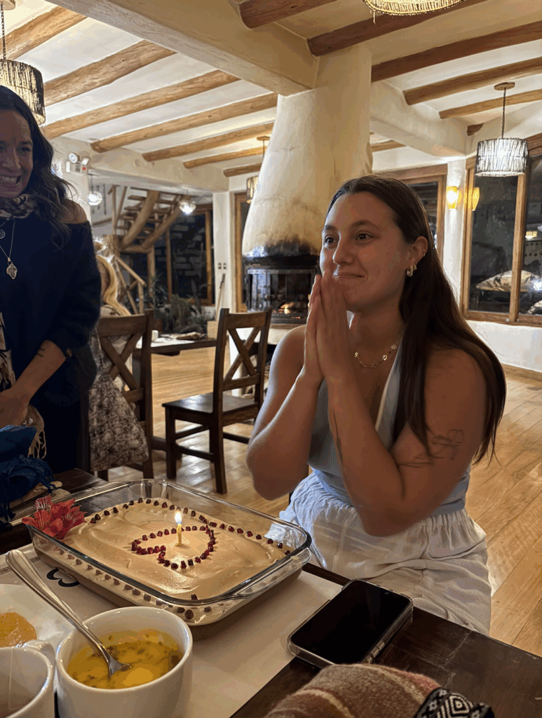 Today is my 25th birthday!! And I am spending it here, WOW. We just did a guided meditation that made me a bit emotional. I was on a beautiful mountain, sunbathing on a rock, surrounded by all these animals. I haven’t felt peace like that in a while. Later that day, everything felt like a dream. We had a shaman come in for a Despacio ceremony. I am calling in many big life changes this year.