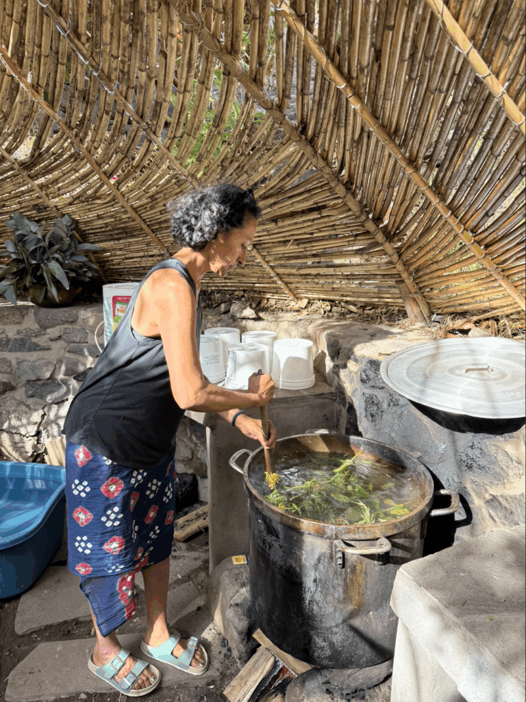 We start self-teaching today! Everything is coming to a close. I had a beautiful practice this morning, run by my peers. We also had a plant bath at night. We infused a large pot of water with medicinal herbs on the property. This is a tradition here.