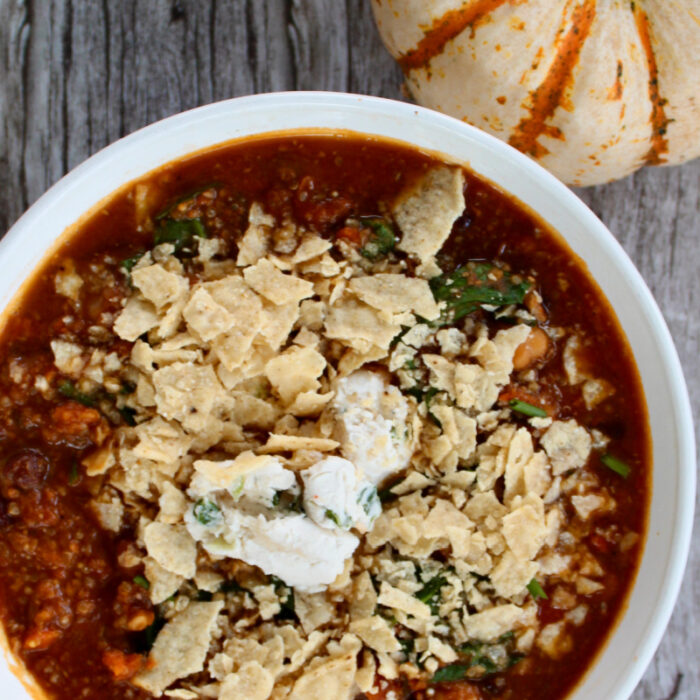 This one-pot pumpkin chili is packed with protein and is the perfect way to use those outdoor fall pumpkins. Picture cozying up next to the fire with a bowl of…
